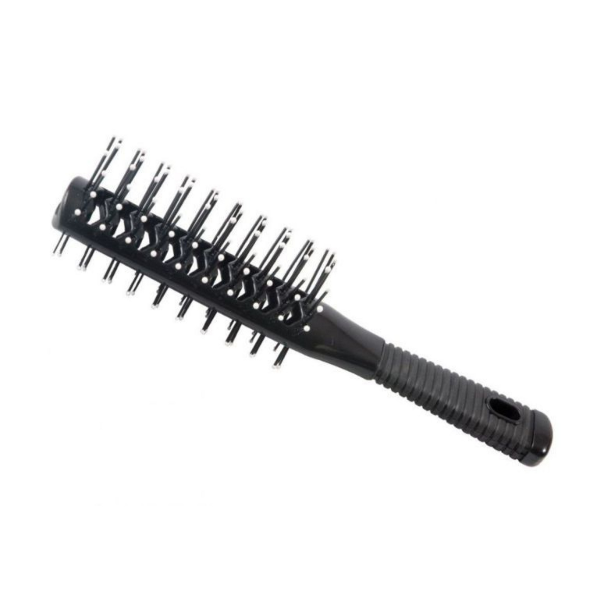 Effektiv och lättanvänd tunnelborste med dubbelsidig design som ger snabbare torkning och volym. De ventilerade kanalerna släpper igenom värme och luft, vilket minskar torktiden och ger ett jämnt resultat. Det ribbade handtaget ger ett säkert och ergonomiskt grepp – perfekt både för hemmabruk och professionell styling.